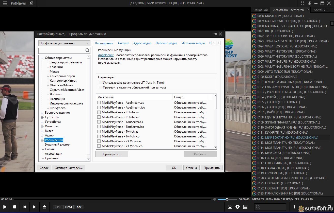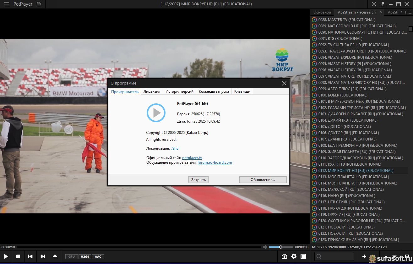 TorrServer MatriX- дополнительно для удобного просмотра по magnet-ссылкам. Копируем в буфер magnet-ссылку (как правило доступна на любом трекере). Запускаем плеер -> Открыть -> Открыть URL-адрес... -> Вставляем ссылку и смотрим **Ace Stream Engine- облегчённая и портативная версия Ace Stream Medias на базе билда 3.1.16 без рекламы и плеера, для просмотра Torrent TV в PotPlayer. Если установлен оригинальный Ace Stream, рекомендуется предварительное удаление. Устанавливается вместе с самообновляемым плейлистом AceStream (1500+ каналов) и Autoit скриптом, который: