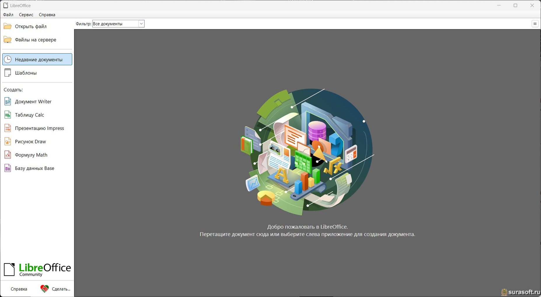 LibreOffice — мощный офисный пакет, полностью совместимый с 32/64-битными системами. Переведён более чем на 30 языков мира. Поддерживает большинство популярных операционных систем, включая GNU/Linux, Microsoft Windows и Mac OS X. Программы LibreOffice — это бесплатный набор программ, сходный по функционалу с пакетом Microsoft Office: Writer – текстовый процессор; Calc – электронные таблицы; Impress – создание и просмотр мультимедийных презентаций; Draw – редактор векторной графики; Math – редактор математических формул. Одно из крайне положительных качеств - возможность работы всех этих приложений с соответствующими документами форматов MS Office.