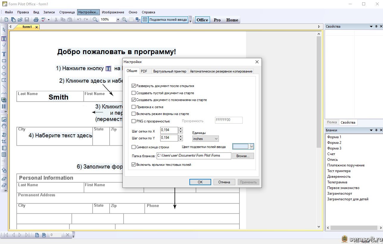 Основные функции Form Pilot Office: