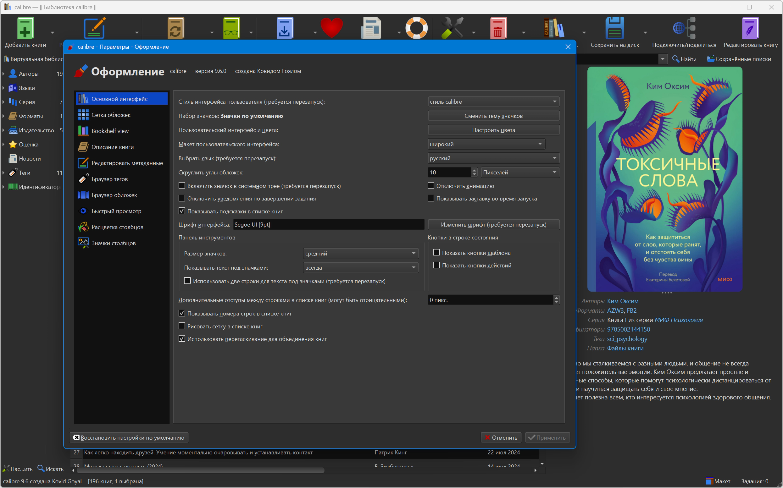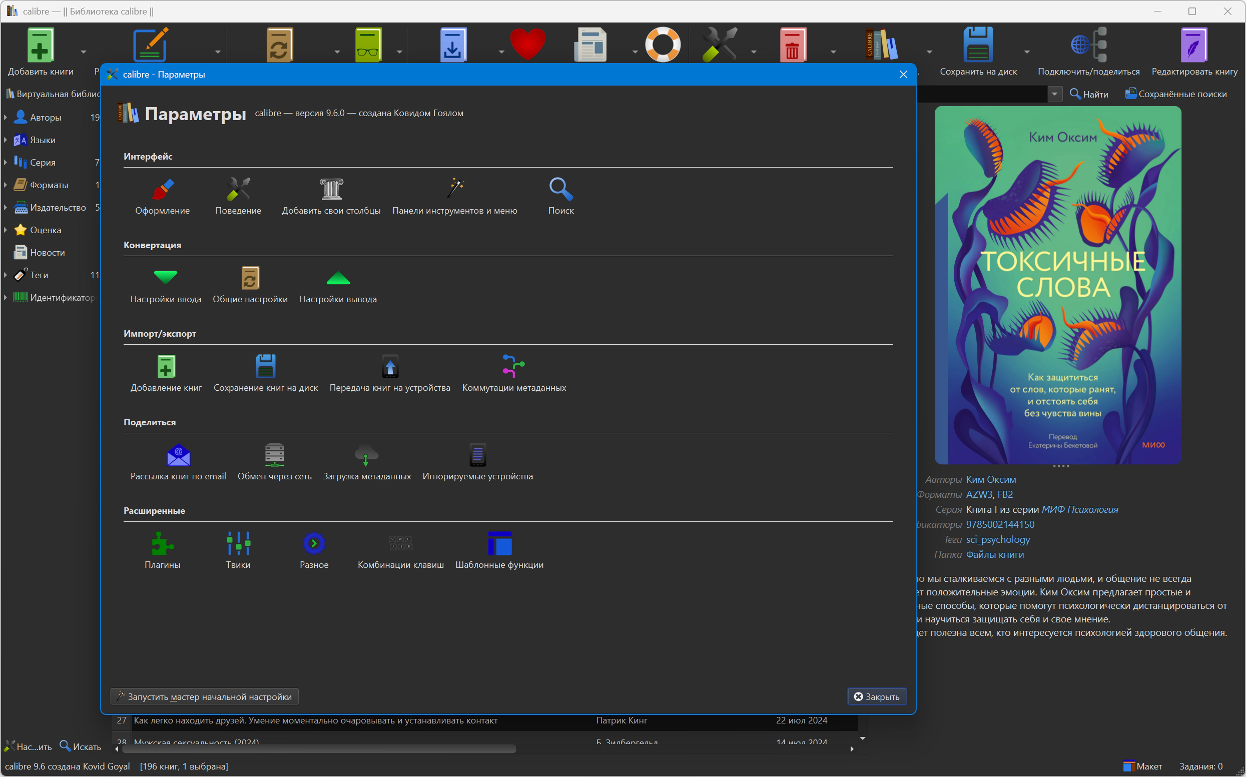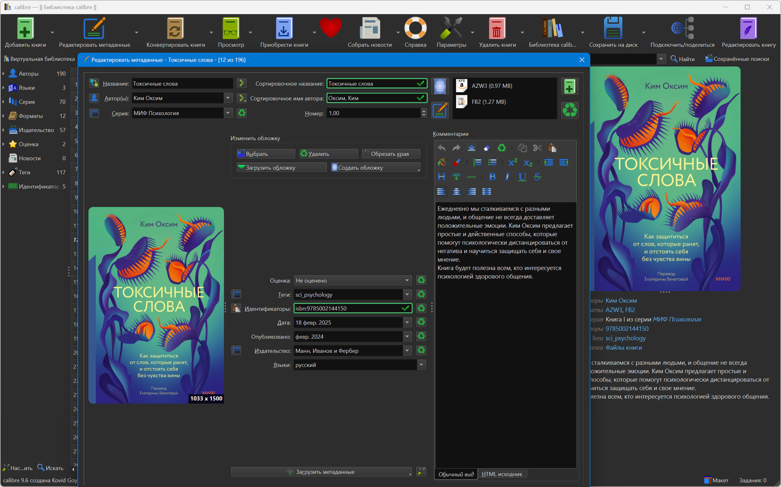 Плюс calibre может искать метаданные о книгах и обложки в интернете по названию/автору или ISBN. Система поиска метаданных определяется плагинами и легко может быть расширена самостоятельно.