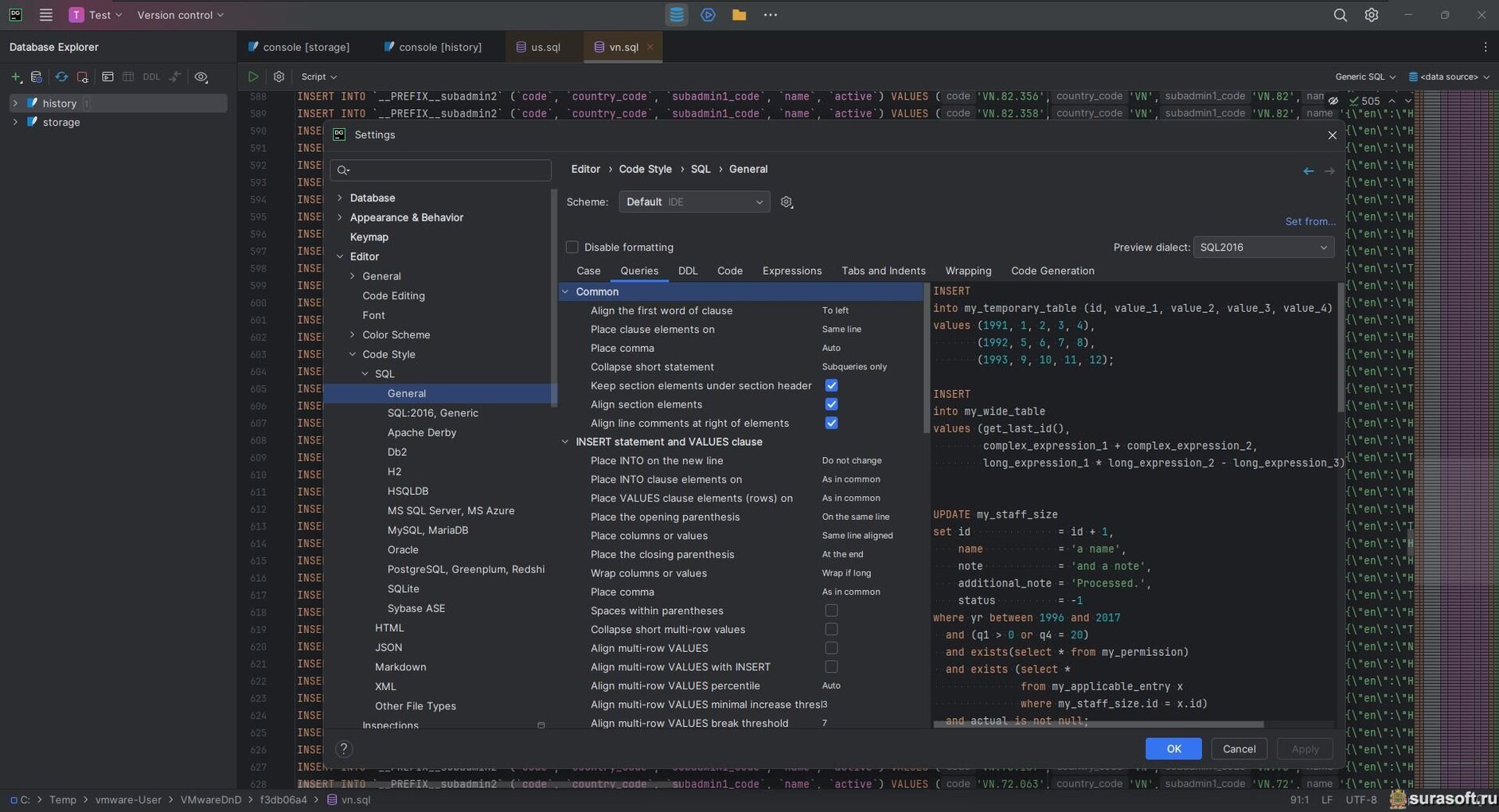 DataGrip поставляется с темными и светлыми темами. Каждый из них может быть полностью настроен, поэтому вы можете создать тот, который подходит вам лучше всего. То же самое работает для более чем десяти предварительно настроенных раскладок клавиш. Выполнение запросов