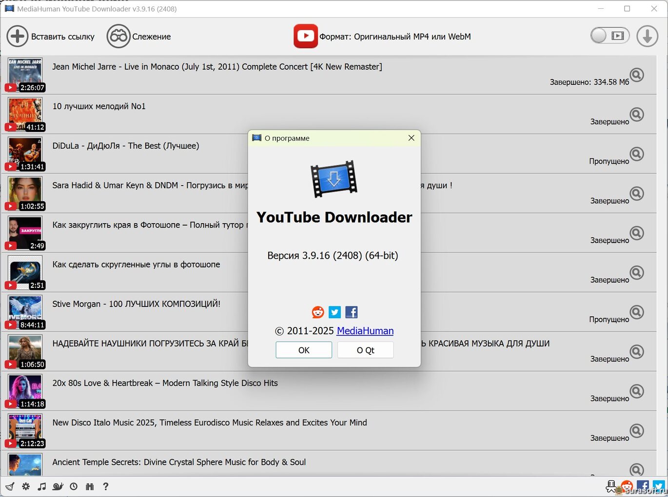--MediaHuman YouTube Downloader 3.9.16 (2408) [Multi/Ru]-- Версия программы: 3.9.16 (2408)