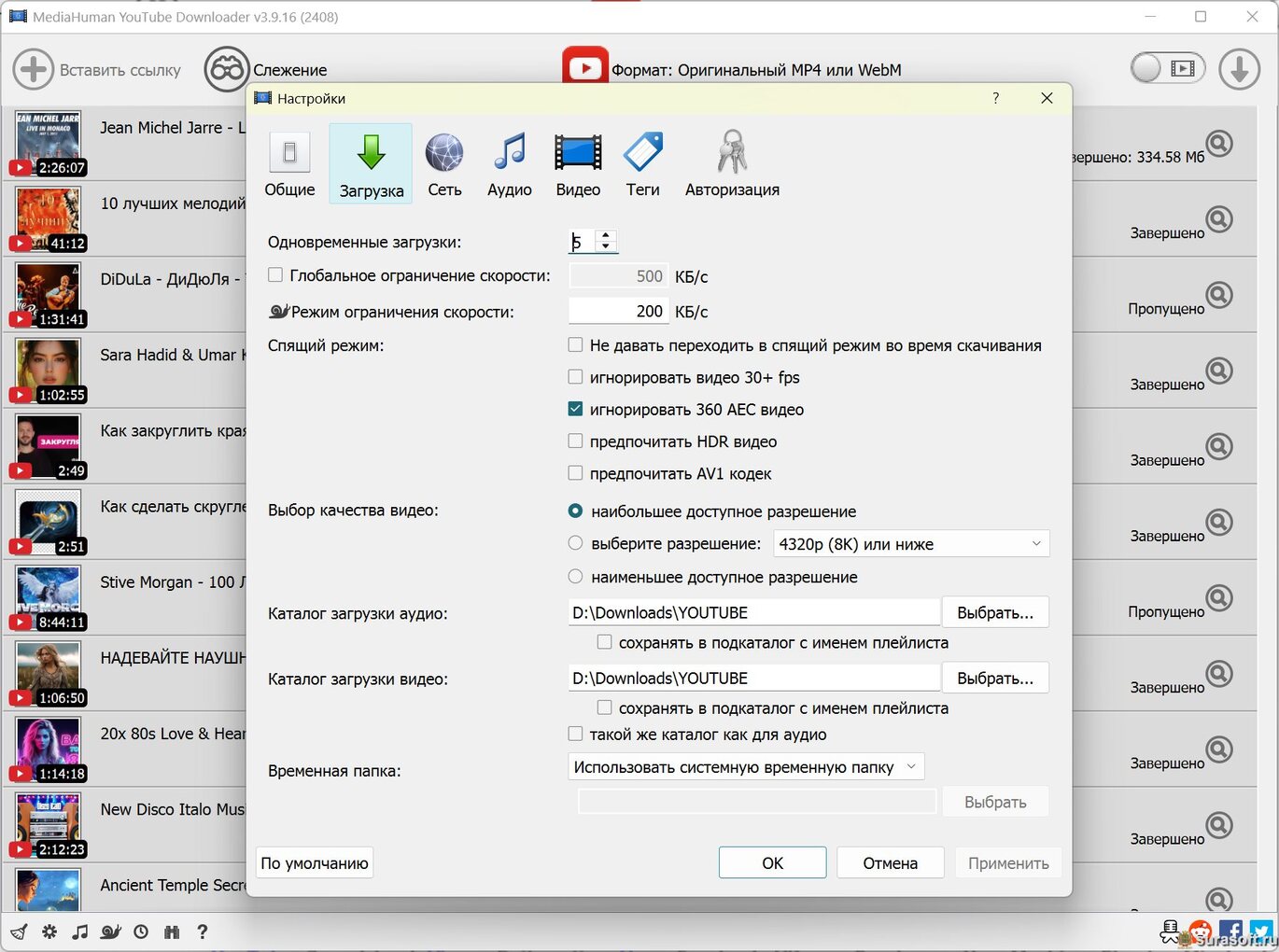 Программа поддерживает загрузку всех доступных разрешений, но выбор остается за вами, будет это 720p, 1080p, 4K или 8K, 60 fps или 30.
