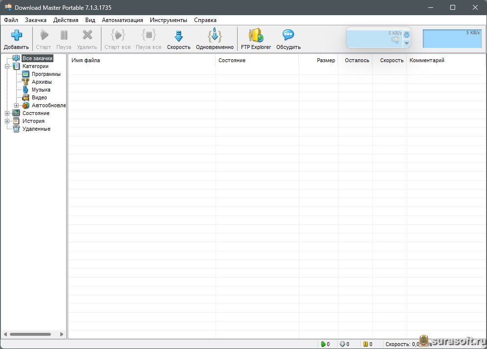 Описание: Download Master эффективно решает 3 главных проблемы, возникающих при закачке файлов из Интернет: скорость закачки, продолжение прерванных закачек и управление закачанными файлами. Основными чертами, выделяющими Download Master среди других программ, являются высочайшая эффективность работы и удобный пользовательский интерфейс. Download Master позволяет значительно повысить скорость закачки файлов через Интернет с использованием HTTP, HTTPS и FTP протоколов. Для этого используется разбиение файла на потоки, которые закачиваются одновременно. Программа также поддерживает докачку файла с текущей позиции после обрыва связи.