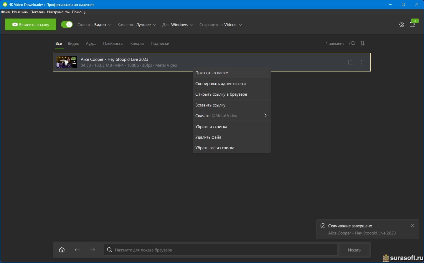 - 4K Video Downloader доступен на нескольких платформах. Скачайте его на ваш Windows, macOS или Linux.