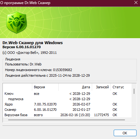 Версия программы: 6.00.16.01270 Официальный сайт:www.drweb.ru Язык интерфейса: Русский Лечение: инсталлятор уже пролечен Системные требования: