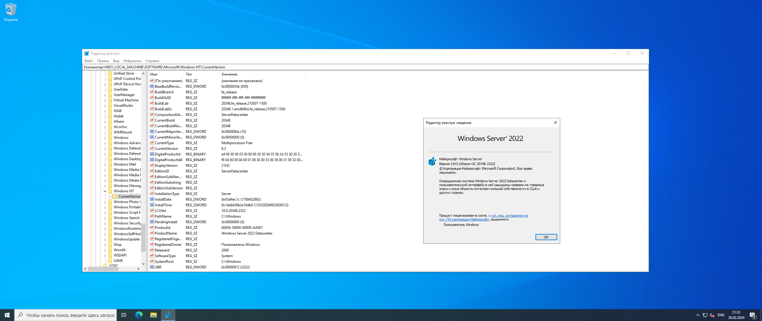 Windows Server 2022 Datacenter (возможности рабочего стола)