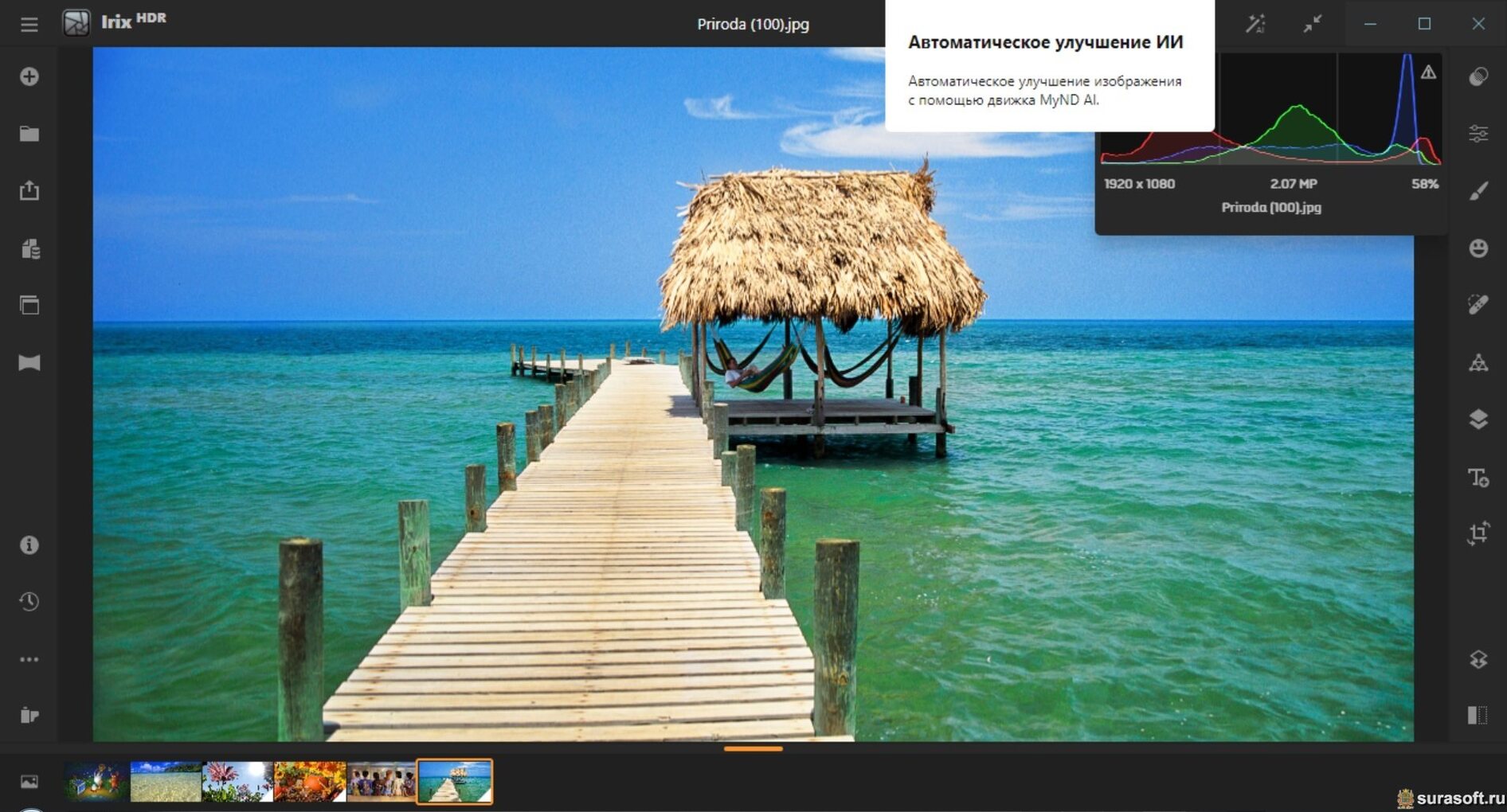 • AI Auto Enhance — автоматическое редактирование в профессиональном стиле одним касанием. Движок Irix HDR Voxell AI обучен на более чем 12 миллионах изображений и применяет проверенные фотографические методы для улучшения ваших фотографий.