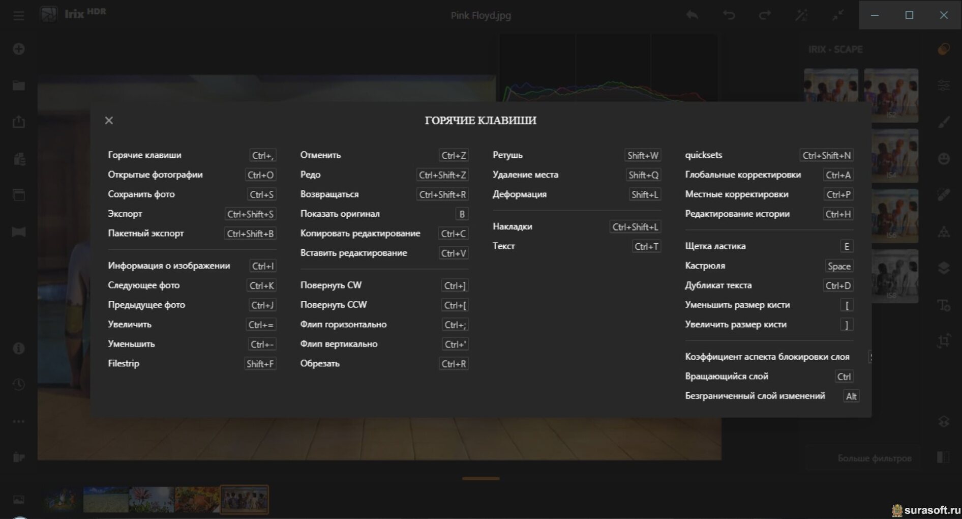 - Динамическая гистограмма RGB и CMYK