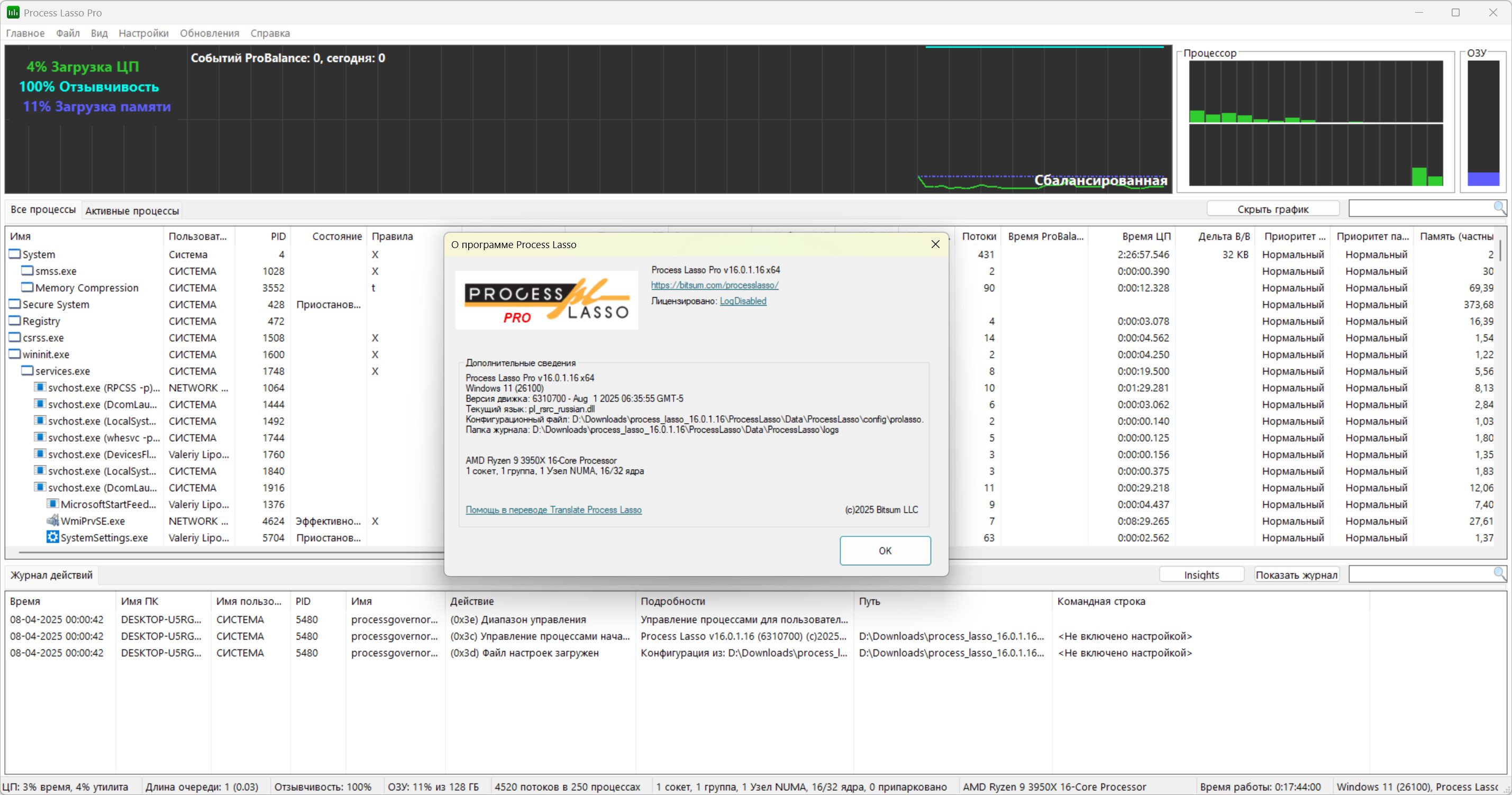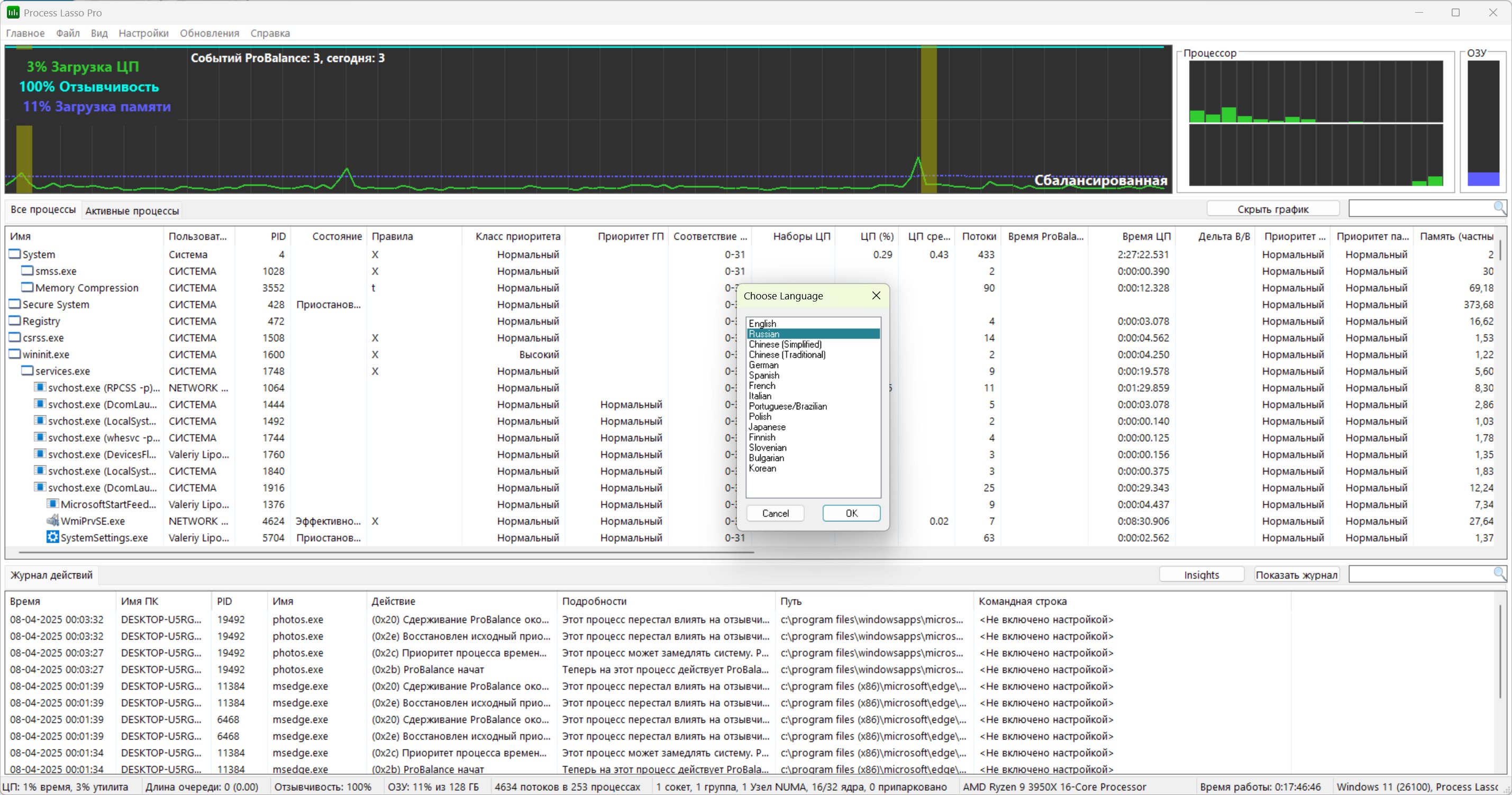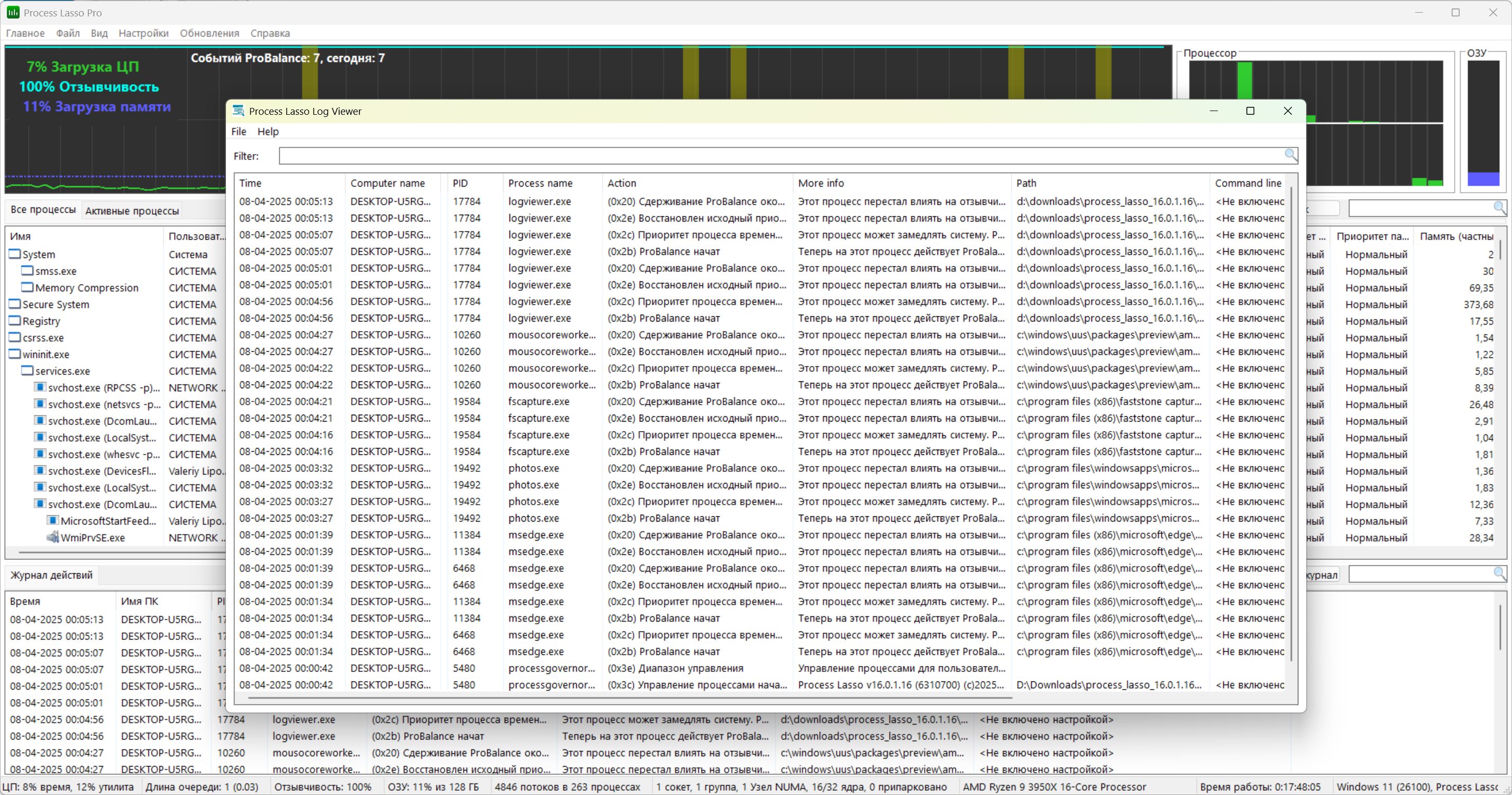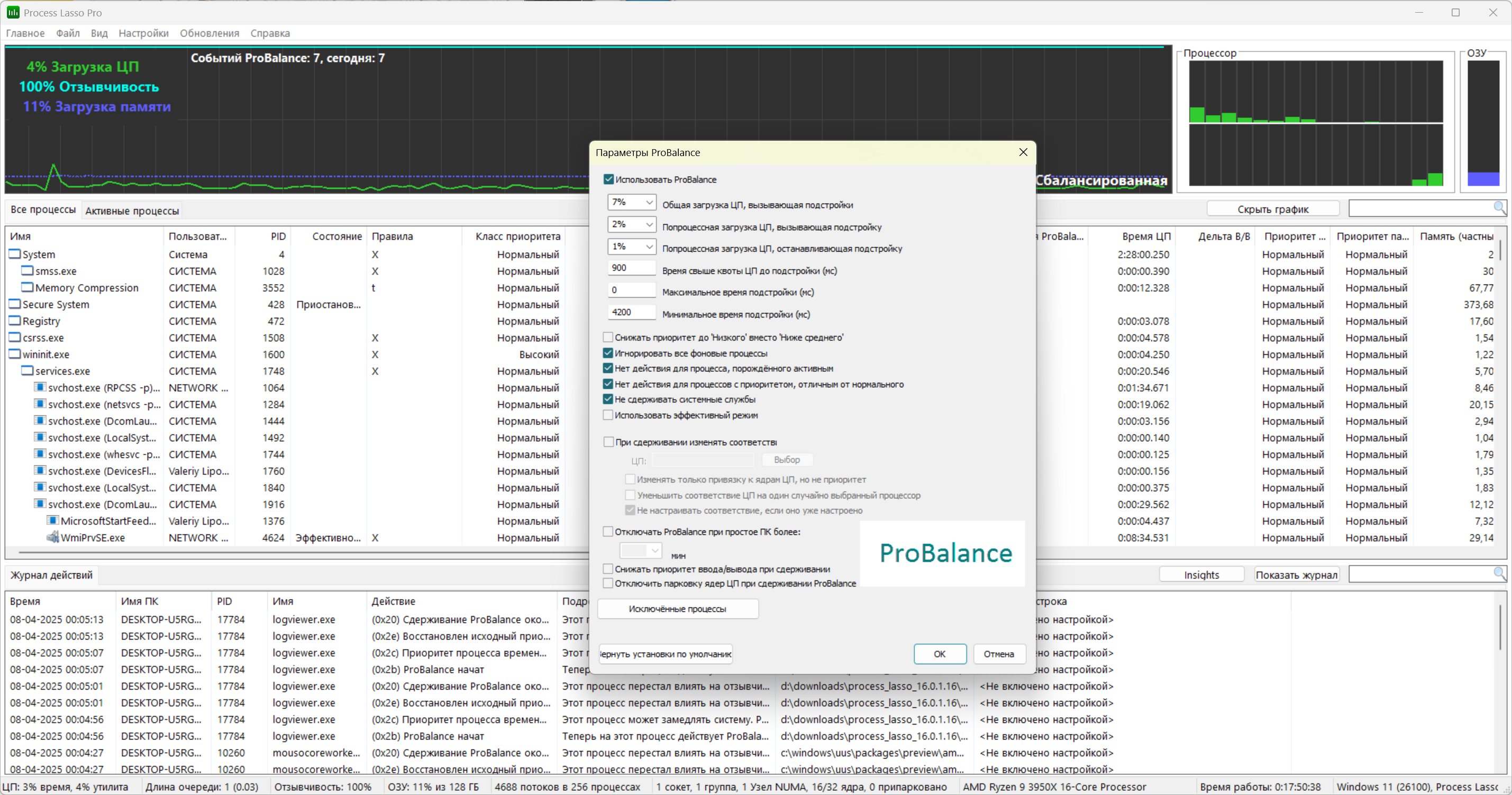 Технология ProBalance (Process Balance) программы Process Lasso аккуратно перераспределяет приоритеты запущенных программ, так что процессы,