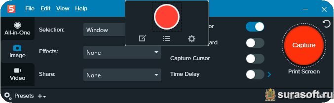 Управлением параметрами захвата, обработки и вывода экранных снимков осуществляется с помощью профилей настройки Snagit. Вы можете создать несколько различных профилей для быстрого захвата, или же выбирать нужный профиль с помощью всплывающей панели SnagIt OneClick или главного окна программы. В большинстве случаев Snagit позволяет полностью автоматизировать процесс подготовки снимков экрана – вам достаточно выбрать профиль, содержащий требуемые параметры захвата, обработки и сохранения снимков, и выполнить захват изображения или нужного объекта– все остальное программа сделает за вас.
