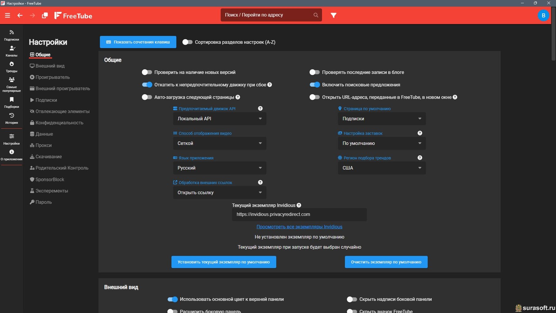 FreeTube поддерживает работу через прокси;