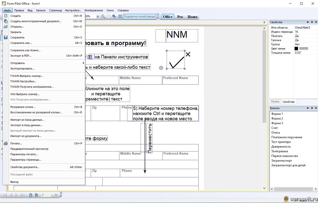 Основные функции Form Pilot Office: