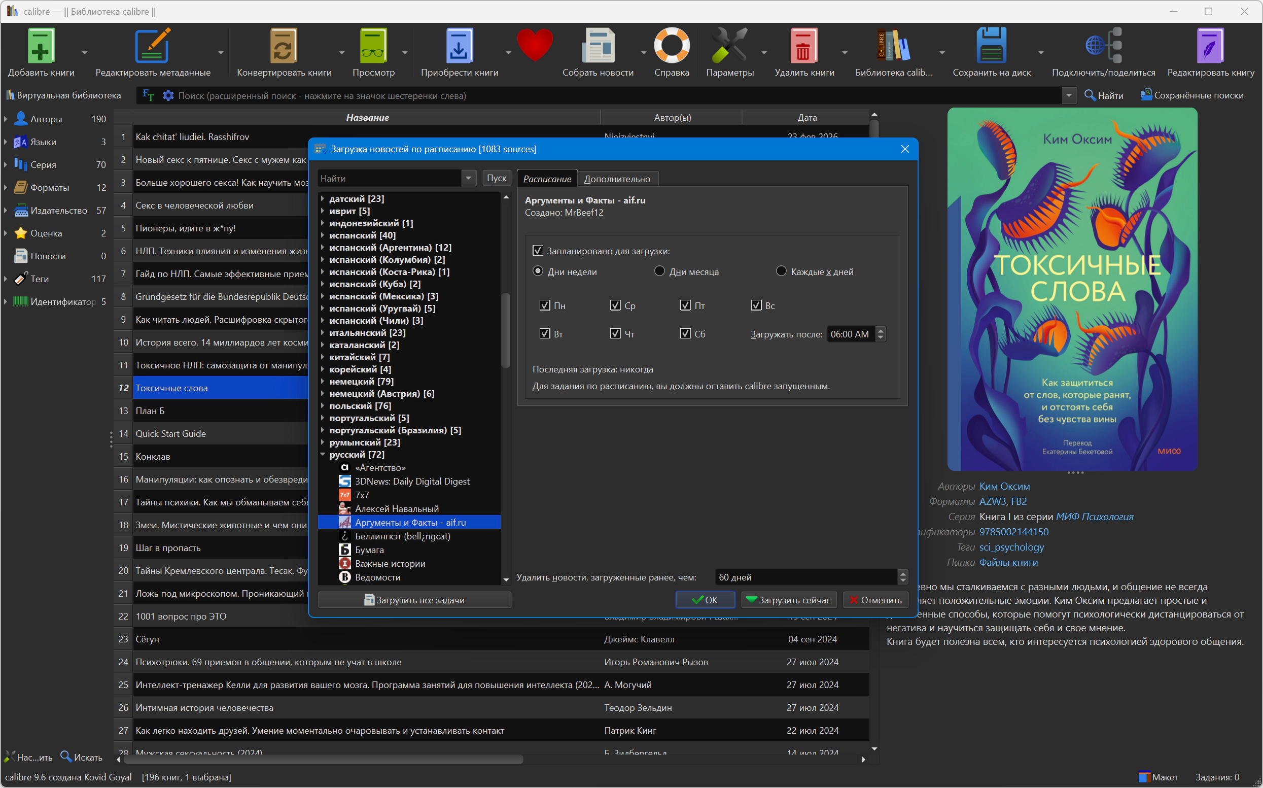 Calibre содержит уже 3 сотни источников новостей. И прочитав мануал, вам не составит труда добавить новые источники