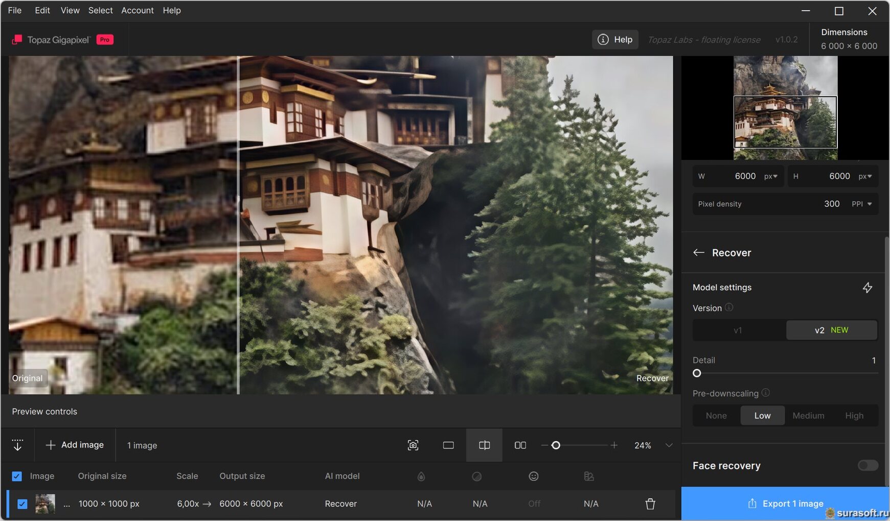 --Topaz Gigapixel 1.0.2 [Multi]--Версия программы: 1.0.2 Официальный сайт:TopazLabs Язык интерфейса: Лечение: в комплекте Тип лекарства: патч Системные требования: Windows: 10 или 11 (рекомендуется наиболее обновленная версия) CPU: Intel или AMD, с инструкциями AVX, выпущенные после 2013 года GPU: