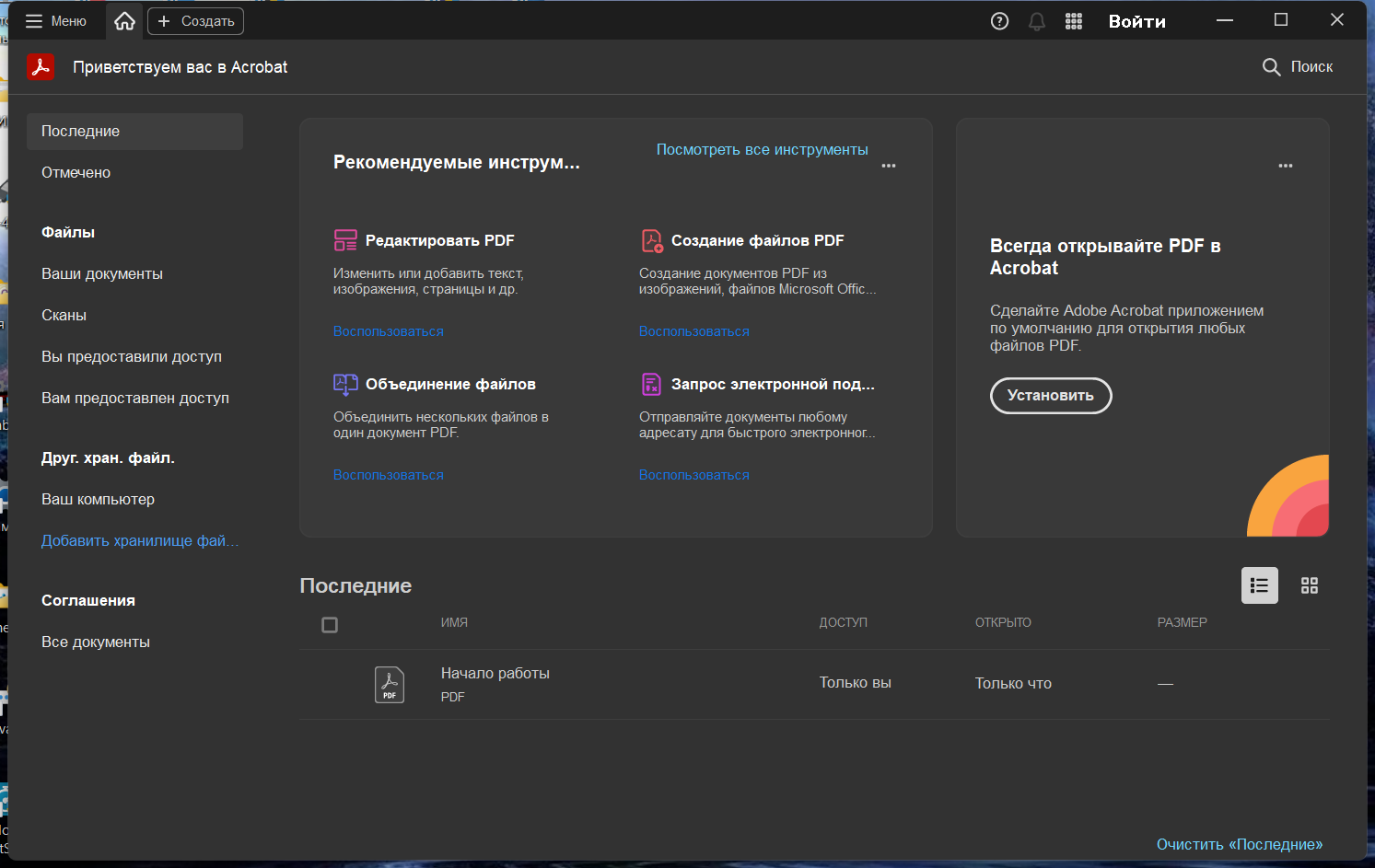 Получайте доступ к инструментам PDF и недавно открытым файлам из офиса, с домашнего компьютера или с мобильного устройства. Воспользуйтесь комплексным решением для работы с файлами в формате PDF, где бы вы ни находились. Работайте на компьютерах под управлением Mac и Windows, а также на мобильных устройствах.