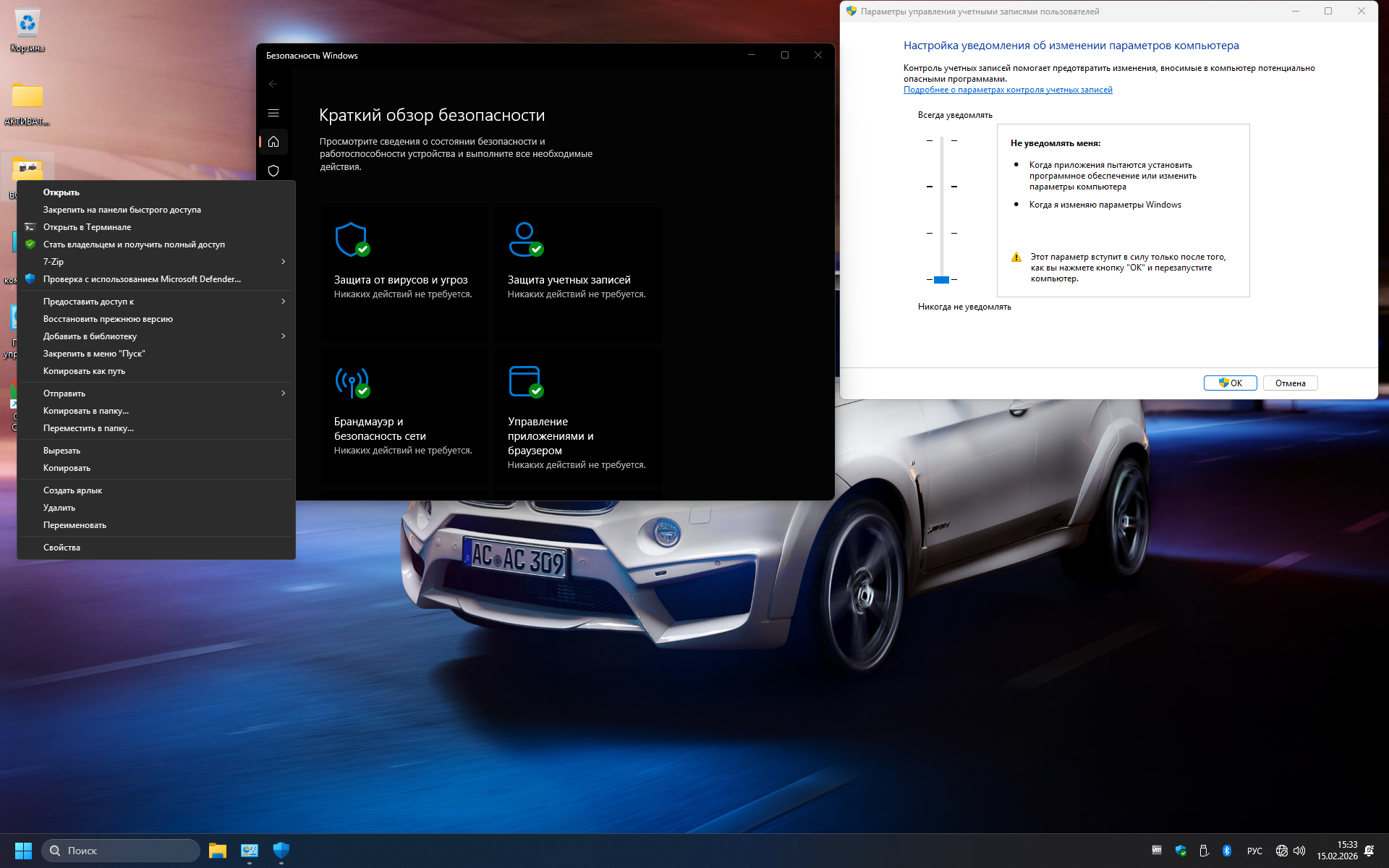 —Контроль учётных записей UAC отключена
