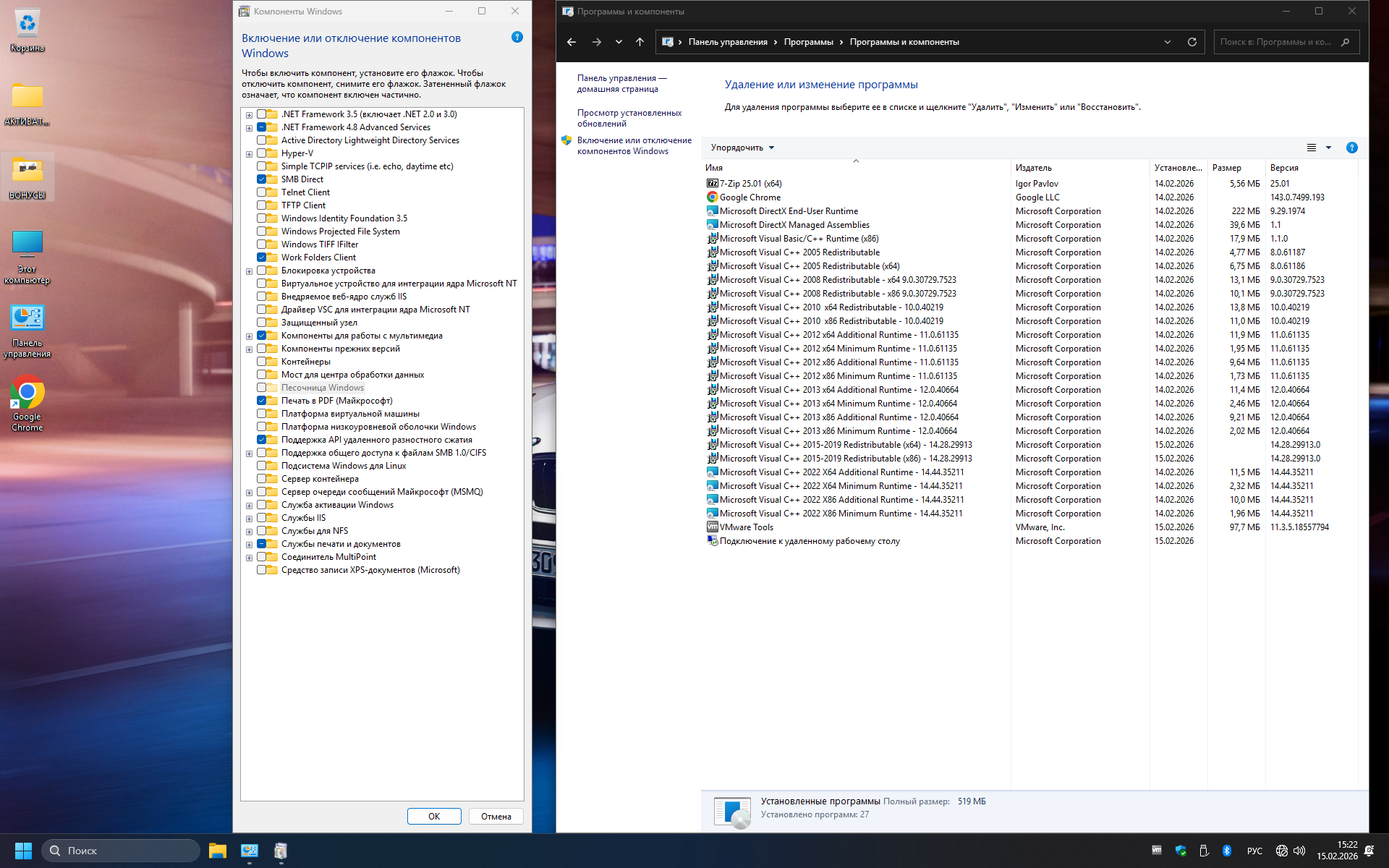 —Включен .Net Framework 3.5 (включая 2.0 и 3.0);