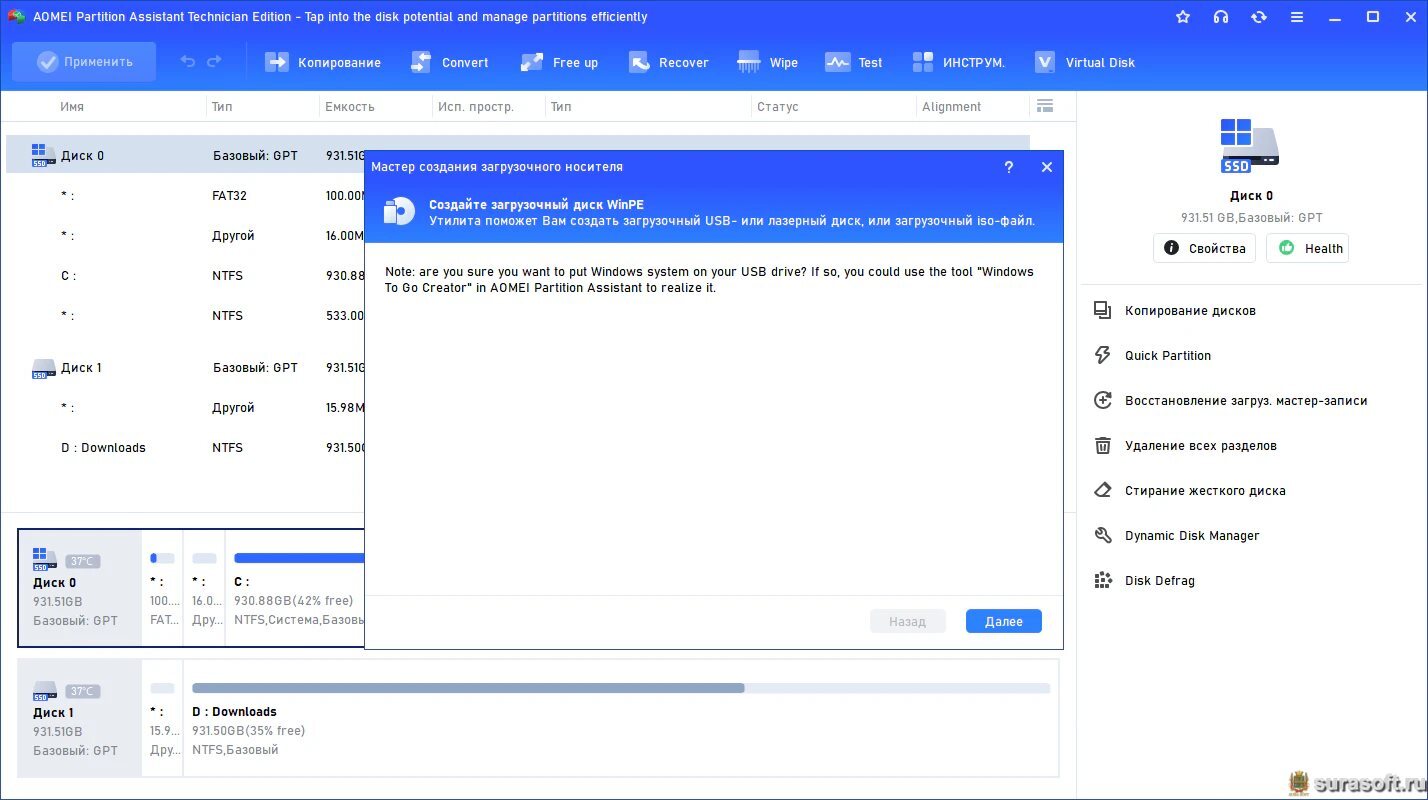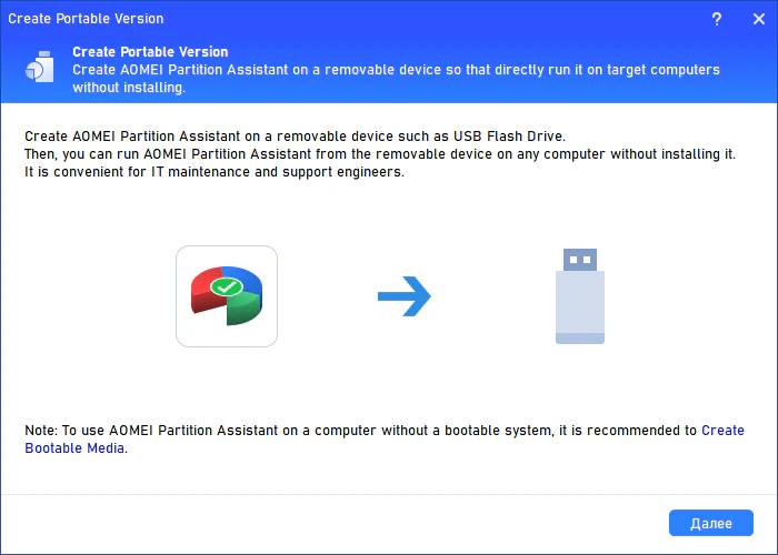 Создание загрузочных CD: выполняет безопасное управление разделами диска в режиме WinPE и загрузка с CD/DVD, флэш-памяти USB.
