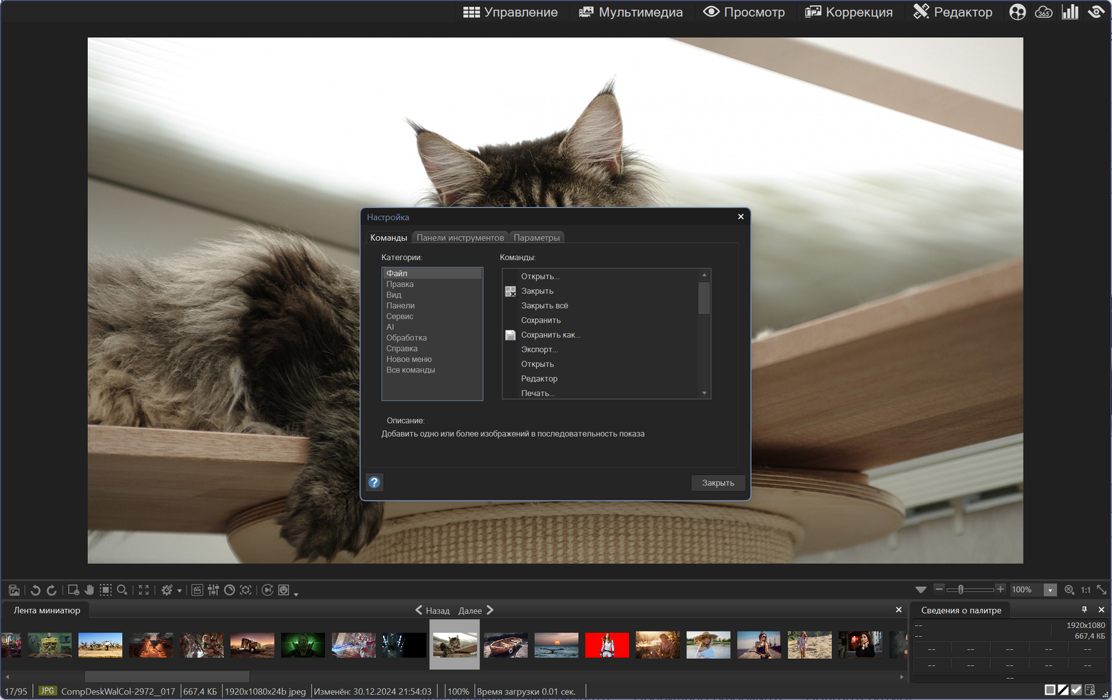 Интегрированная IPTC поддержка для взаимодействия с PhotoShop Captions;