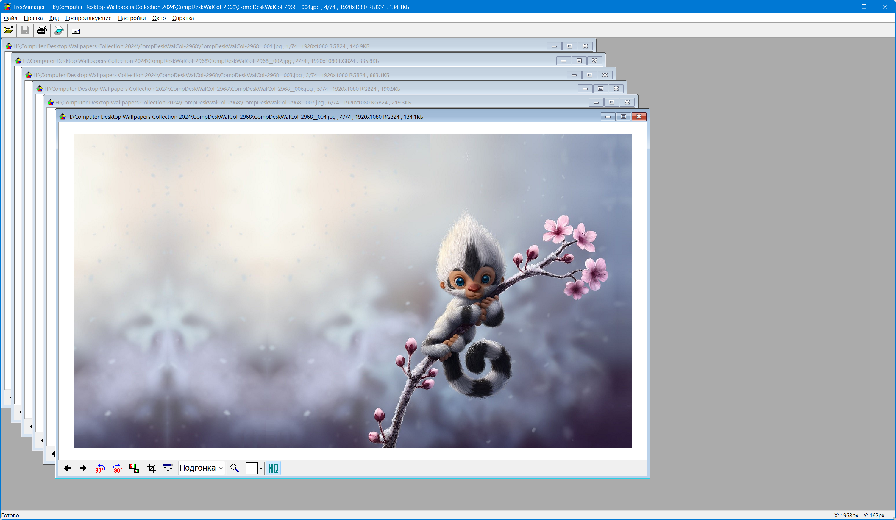 Быстрое и бесплатное приложение для просмотра и редактирования изображений для Windows. FreeVimager позволяет открывать графические файлы форматов: JPEG, BMP, GIF, TIFF (многостраничный), PNG, PCX и EMF, имеет несколько полезных функций обработки картинок (поворот, изменение размера, настройка яркости, контрастности и цветности, наложение фильтров, удаление эффекта "красных глаз" и т.д.) и может работать в режиме слайд-шоу. Кроме того, здесь присутствует возможность предпросмотра и позиционирования изображения на листе бумаги перед печатью, функция получения картинок со сканера и обработки графики в пакетном режиме.