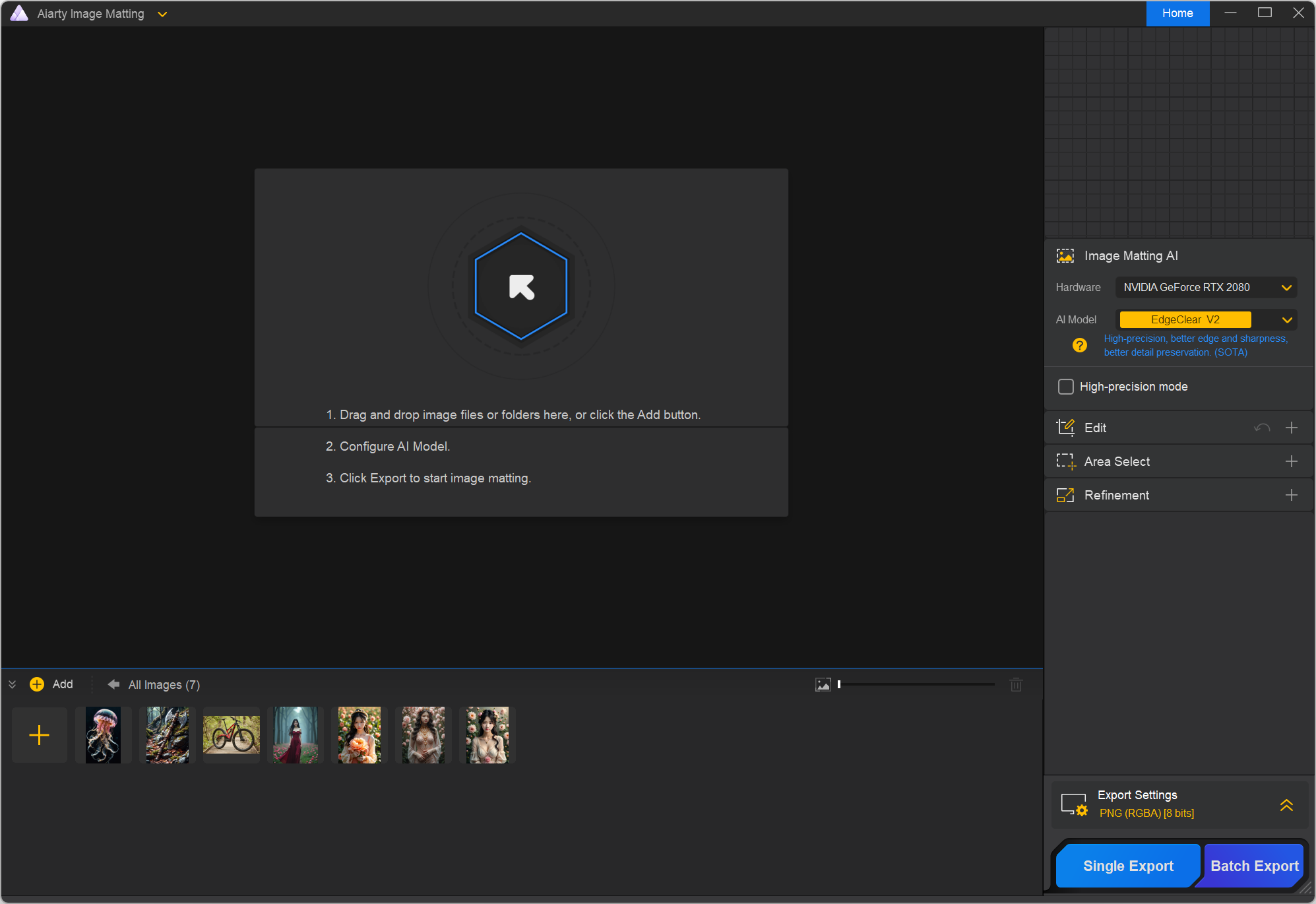- Высококачественный вывод : AIArty поддерживает ввод и вывод изображений 4K UHD, гарантируя, что извлеченные объекты сохранят четкость и детализацию независимо от размера окончательной композиции.