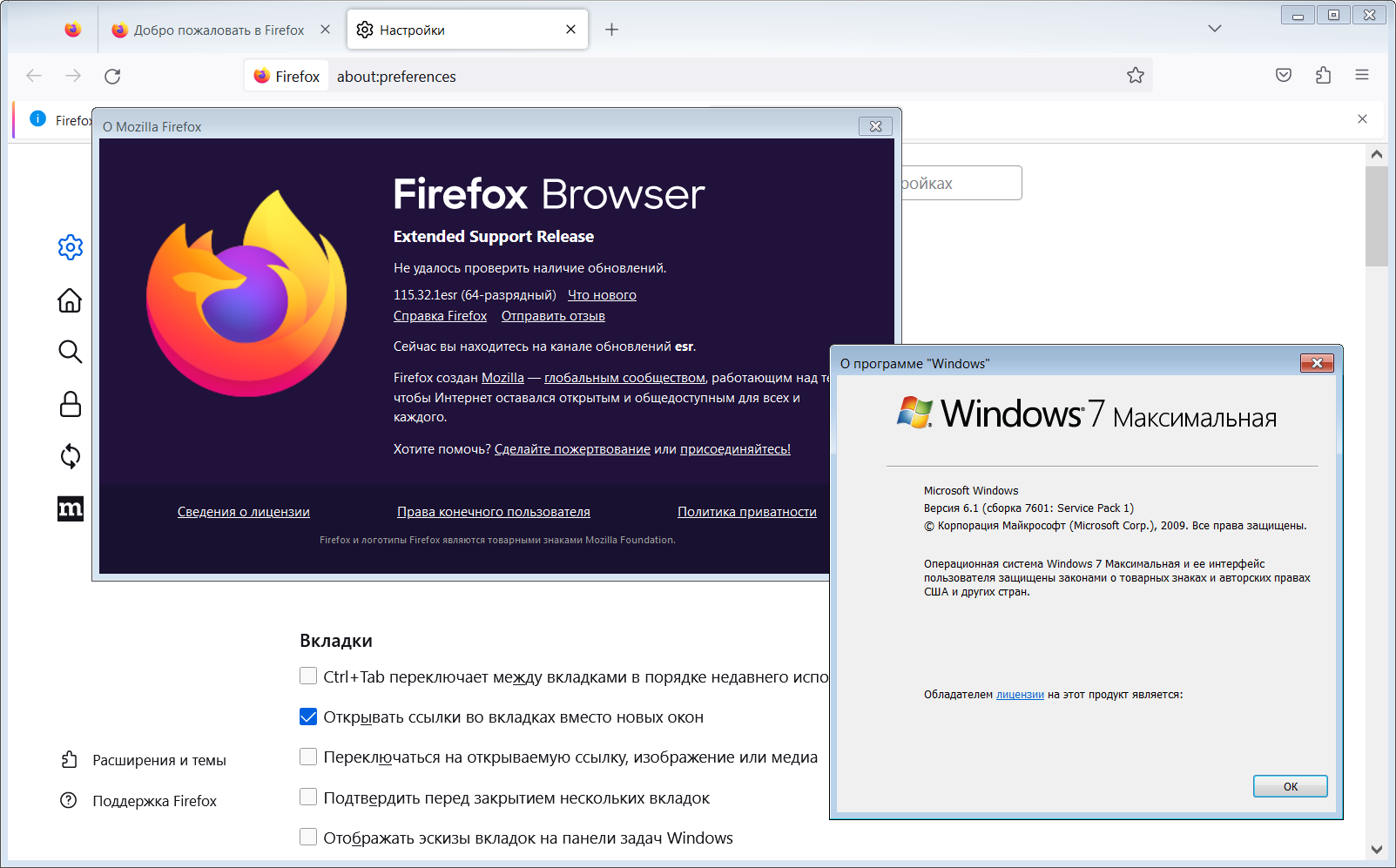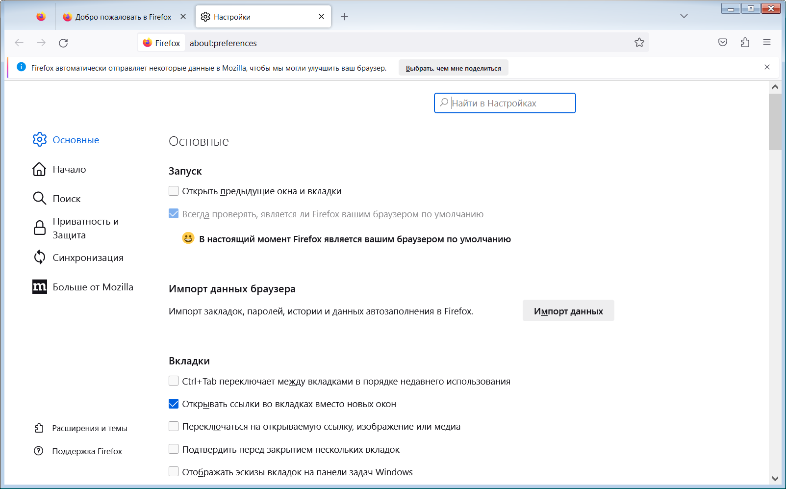 • Поддержка вкладок (несколько страниц в одном окне)