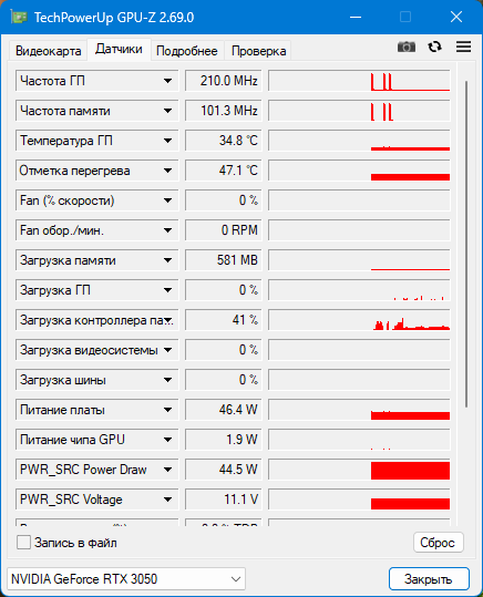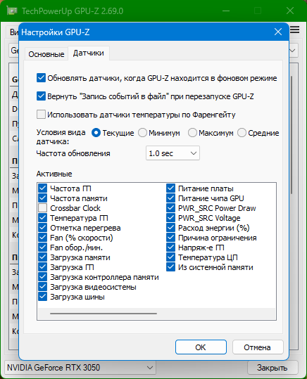 Считывает данные с различных датчиков, установленных на видеокарте (частоты, температуры, скорости вентилятора) и отображает их значения в реальном времени.