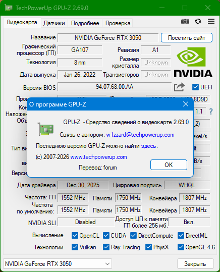 --GPU-Z 2.69.0 RePack by druc [Ru]--Версия программы: 2.69.0 Официальный сайт:TechPowerUp Язык интерфейса: Русский Лечение: не требуется Системные требования: