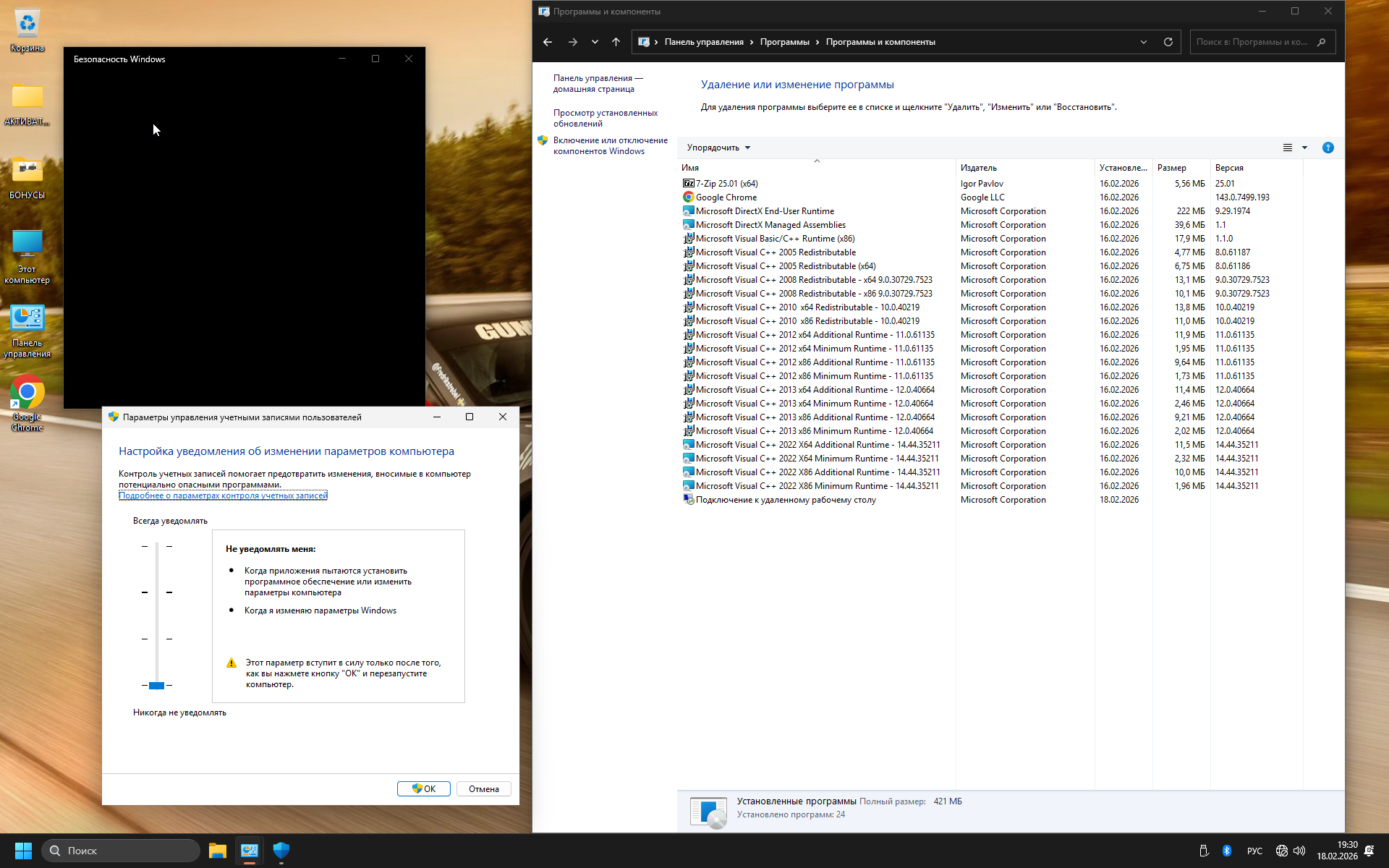 —Контроль учётных записей UAC отключена