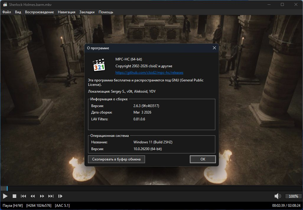 Версия программы: 2.6.3 Официальный сайт: mpc-hc project | Unofficial Официальный сайт сборщика: LRepacks